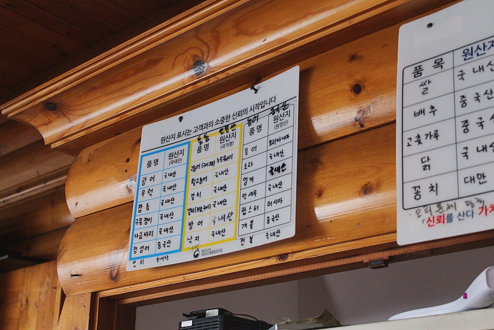 시간에 맞춰 찾아가보니 주문한 회포장이 깔금하게 포장이 되어 잇었는데요. 계산을 하는동안 잠시 둘러보니 원산지표시를 확인할 수 있었고 대부분의 횟감은 국내산을 사용하고 있는걸 확인할 수 있었답니다. 그리고 아무리 횟집을 찾는분들이 적어도 회포장을 하는 분들이 많아서인지 수족관은 깨끗하게 관리가 되어 있었고 횟감들도 신선한 상태로 있어 왠지 믿음이 갔답니다.