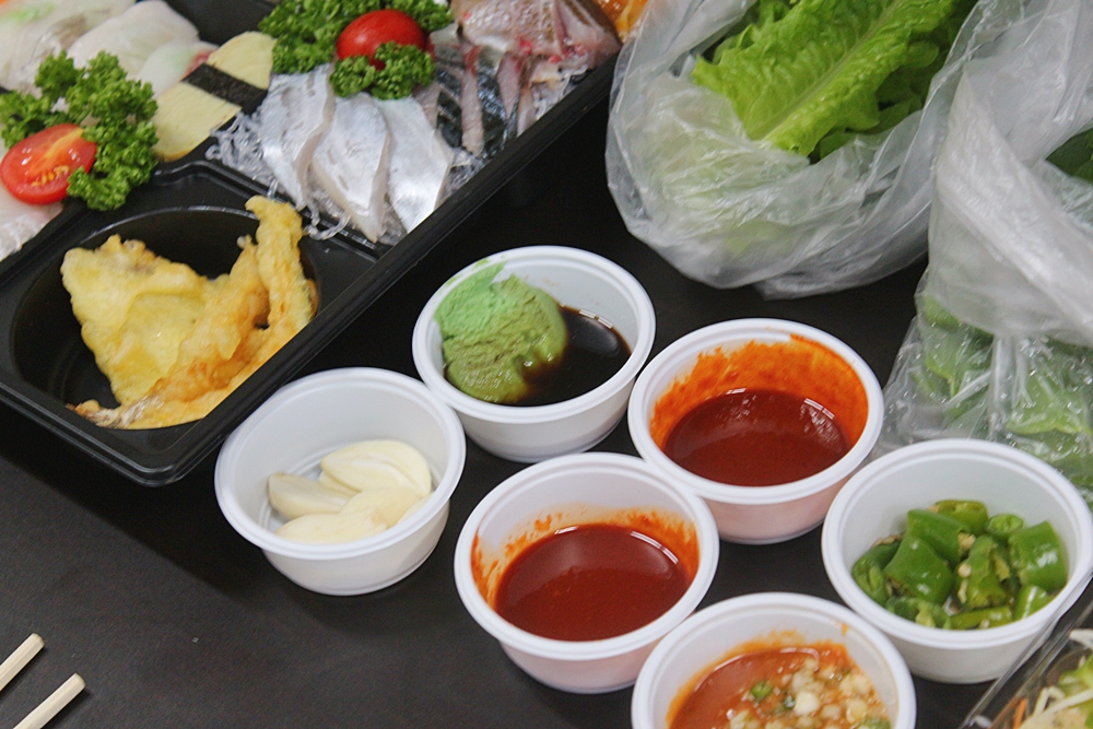 소스들도 종류별로 담아 주셔서 부족함없이 회를 먹을 수 있었네요.