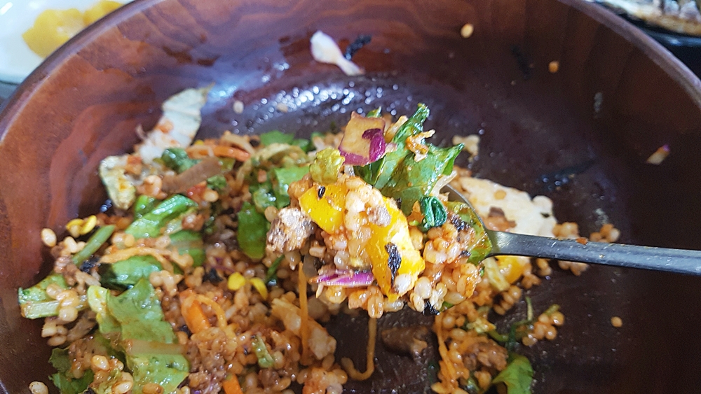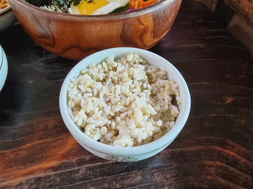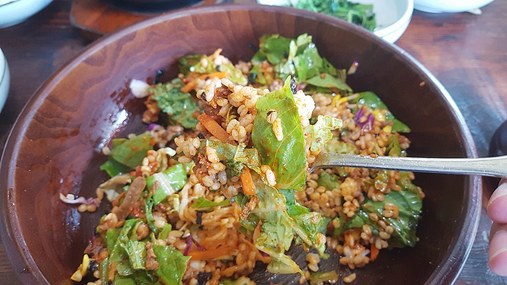 푸짐한 재료들은 밥을 한공기만 넣었는데도 양이 정말 어마어마할 정도였는데요. 보리밥의 구수함은 맛도 좋지만 건강해지는 느낌이라 더욱 좋더라고요.