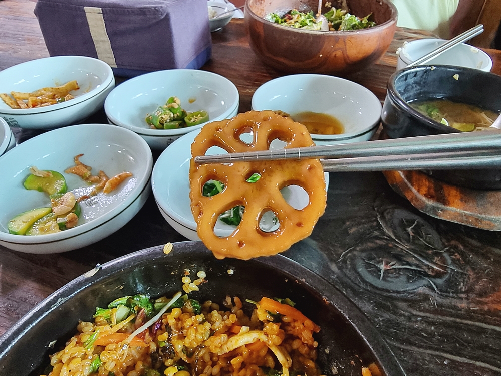 돌솥비빔밥 역시 고추장을 먹을만큼 넣어 비벼줬는데요. 재료들이 뜨거운 돌솥안에 들어가 있어 따뜻하게 식사를 할 수 잇었는데요. 이게 또 별미였답니다.