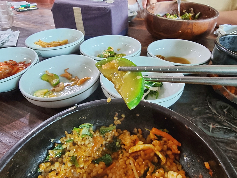 저희는 고기비빔밥과 돌솥비빔밥을 주문했는데요. 잠시후 반찬들이 먼저 채워지더라고요. 반찬은 정갈하게 나오는 편인데 하나같이 간도 적당하고 밥반찬으로는 제격이었답니다.