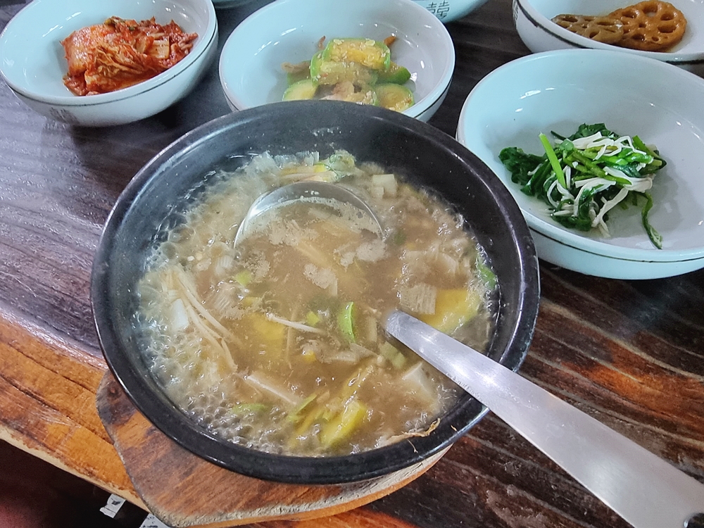 중간중간 먹어주는 된장찌개는 입안을 정돈시켜주는데 아주 좋았는데요. 직접 담근 된장을 사용하는거닞 된장을 조금 얻어가고 싶을 정도였답니다.
