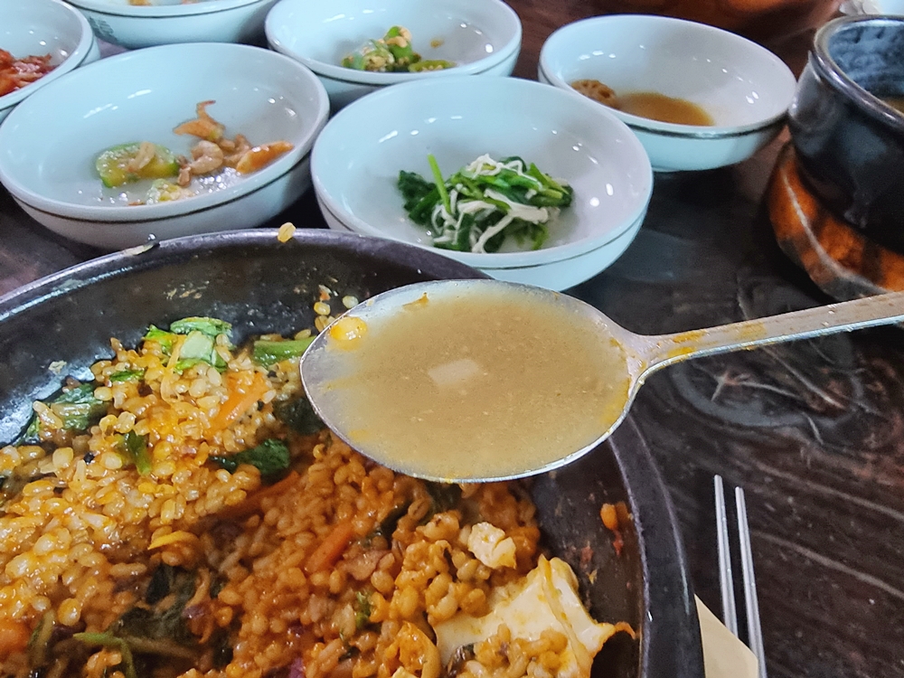 돌솥에 누른 밥도 정말 최고였는데요. 개인적으로는 누른밥을 긁어 먹는 재미가 아주 쏠쏠했답니다.