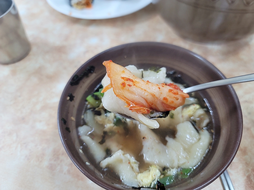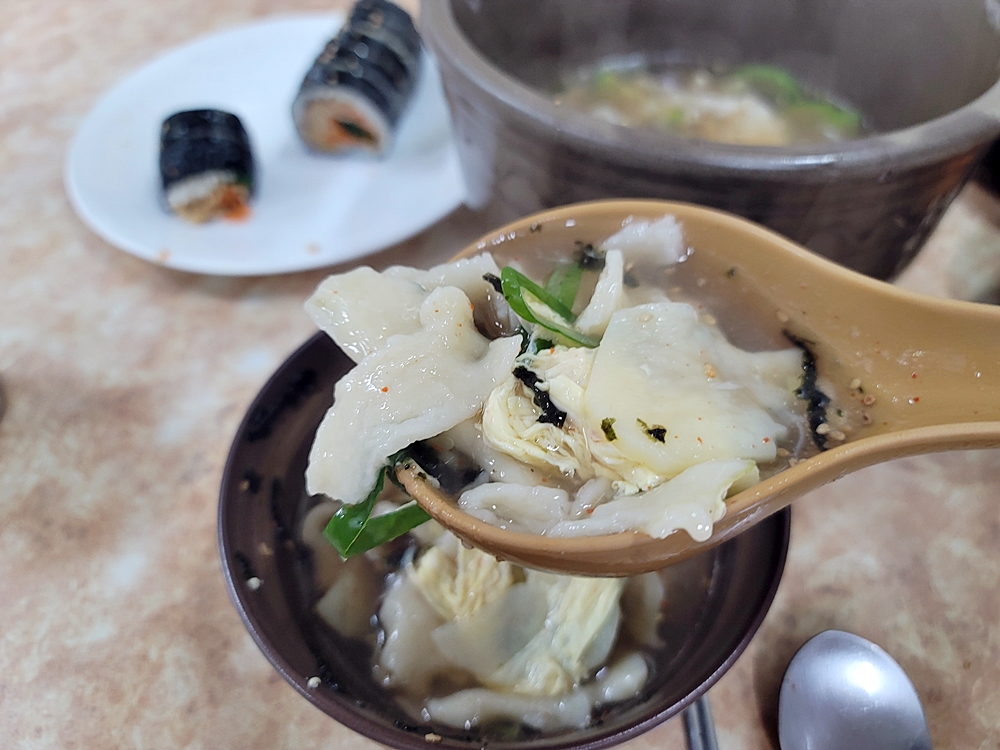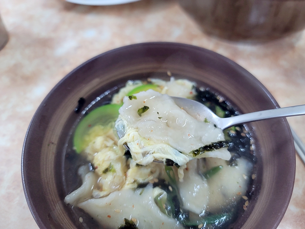 소박한 재료들로만 채워진 수제비지만 화려한 재료가 들어간 메뉴들보다 훨씬 깔금하고 매력적인 맛을 선사했는데요. 얇은 두께의 반죽은 다 먹을때까지도 불지 않고 탱글한 탄력감을 유지해주고 있어 너무 좋았네요.