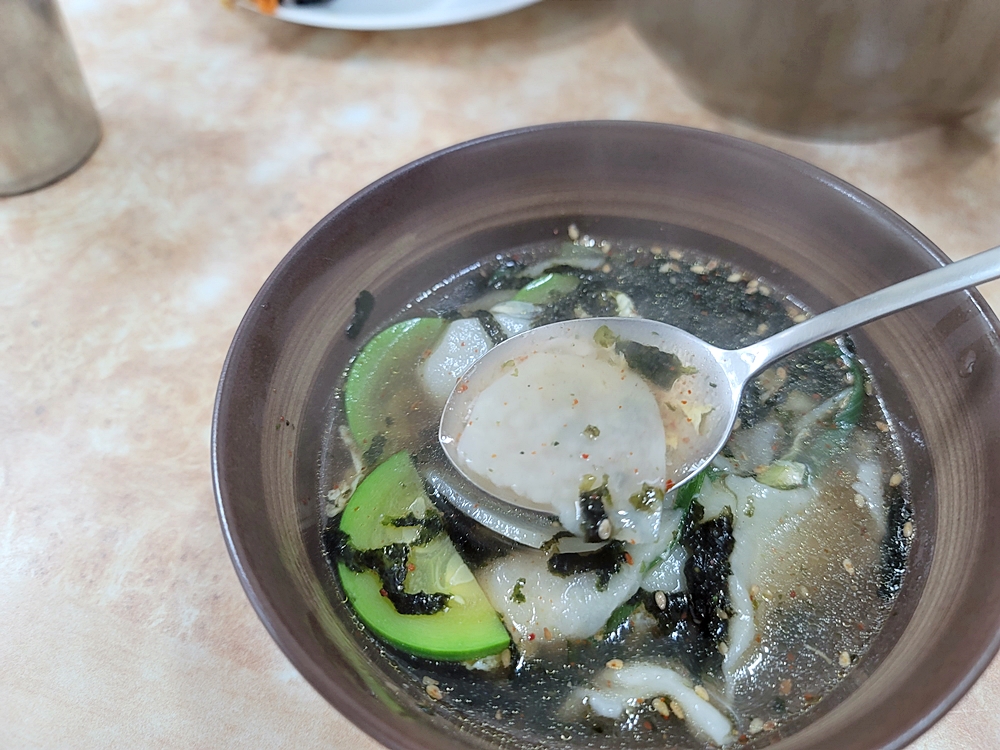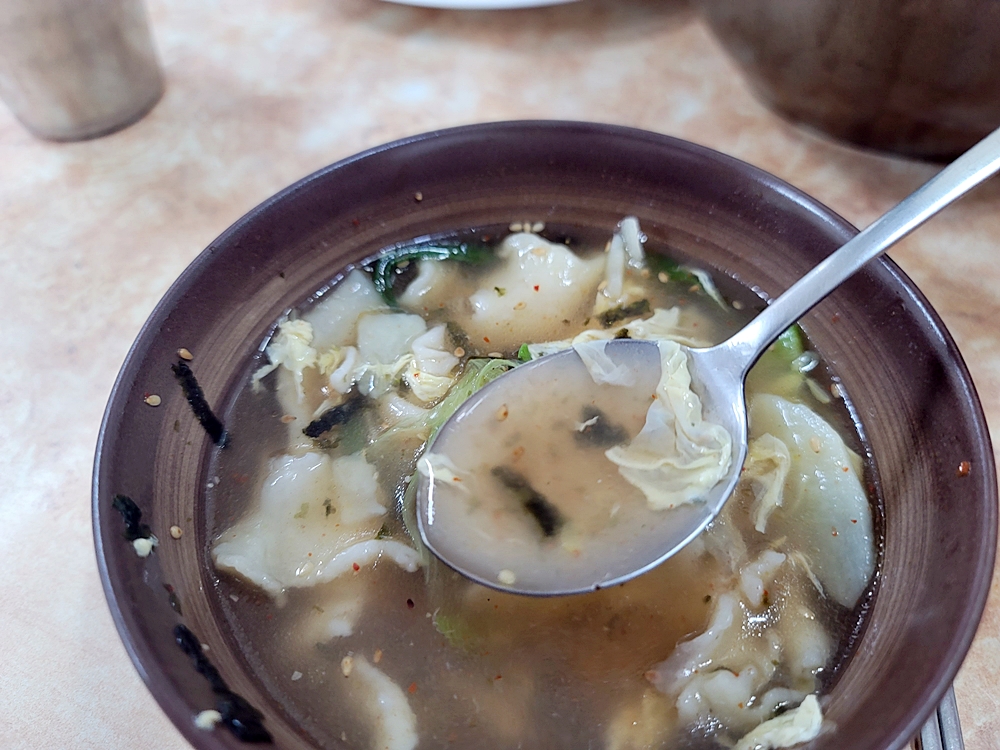그리고 수제비의 또다른 포인트인 육수는 깔끔하면서도 시원함이 돋보였는데요. 진한 감칠맛을 느낄 수 있었고 전날 술한잔을 했더라면 담백하게 해장으로도 안성맞춤인 육수였답니다.