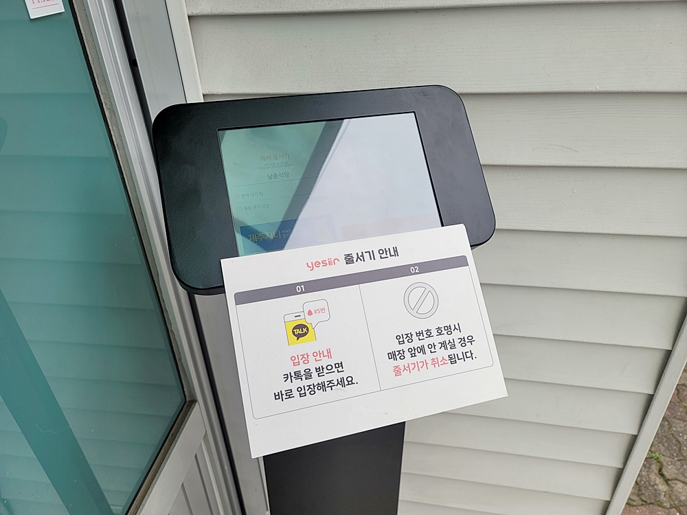 도착하면 가장먼저 대기를 걸어둬야 하는데요. 키오스크로 대기를 걸어두면 카톡으로 몇번째인지 실시간으로 확인이 가능해 굳이 식당 앞에서 대기를 하지 않아도 된답니다.
