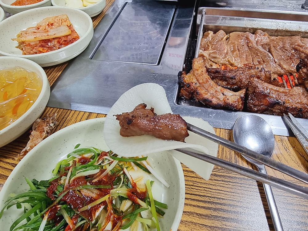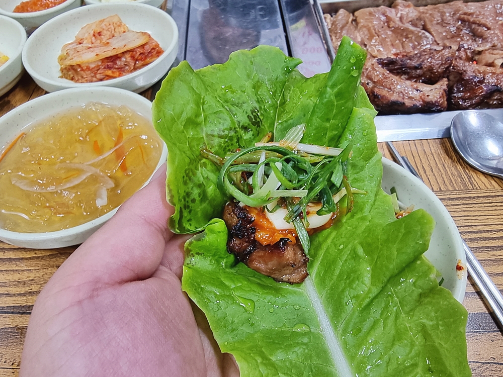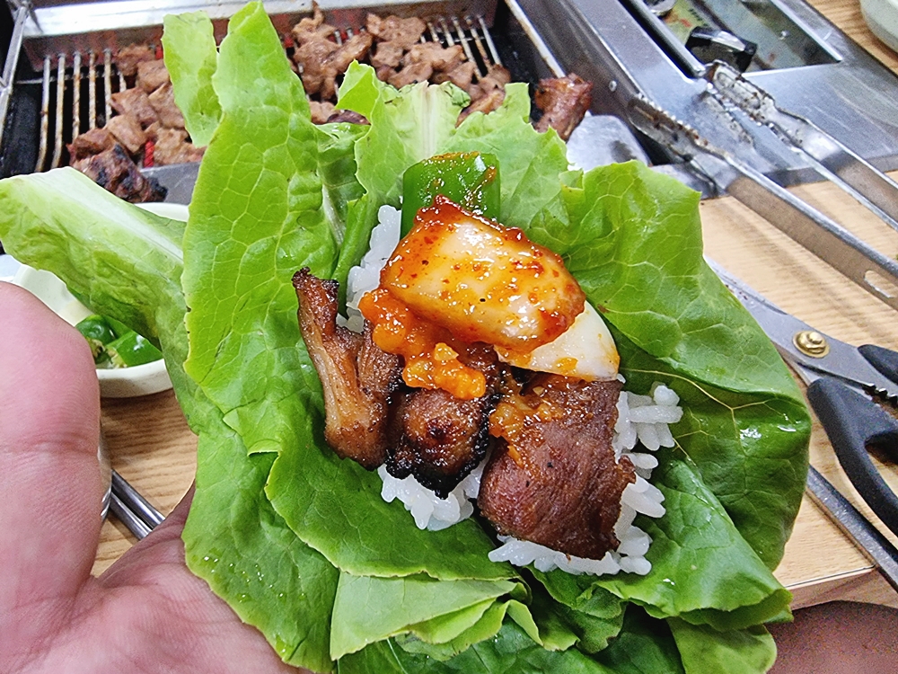 쌈채소에 싸먹거나 쌈무 등에 싸먹는것도 별미였는데요. 느끼함을 잡아주면서 고기맛을 한층 업그레이드 시켜주더라고요.
