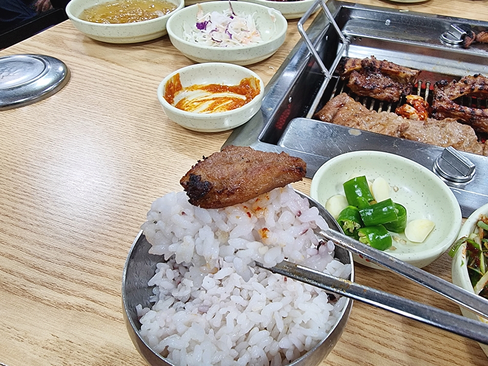 갈비는 역시 밥과 함께 먹을때 빛을 발하는데요. 갈비에서는 누린내도 전혀 나지 않고 적당한 쫄깃한 식감이 밥도둑이 따로 없었답니다.