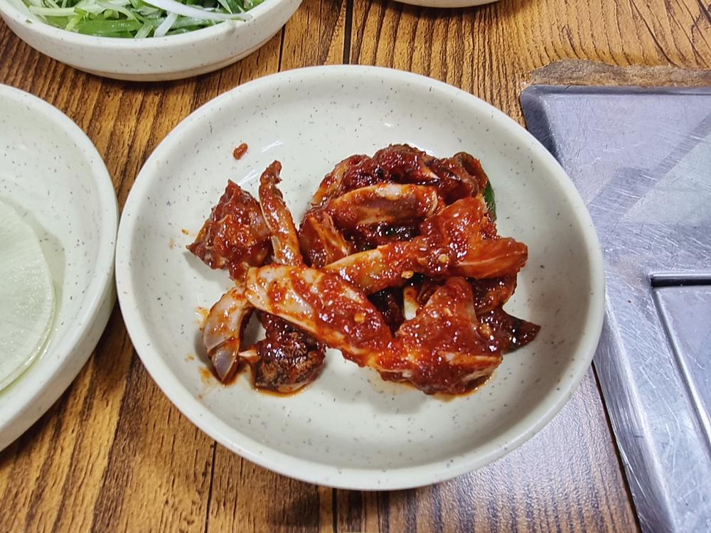 제주 억소리갈비는 양념게장의 활용도가 아주 큰데요. 그냥 먹어주면 밥도둑이고 불판에 구워 먹어주면 또다른 별미를 맛볼 수 있답니다. 그리고 갈비를 양념게장 양념에 찍어 먹어주면 매콤함이 더해지면서 고기를 더욱 맛있게 먹을 수 있답니다.