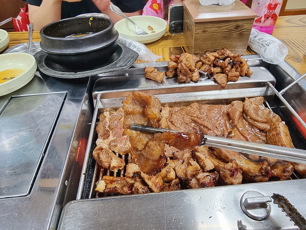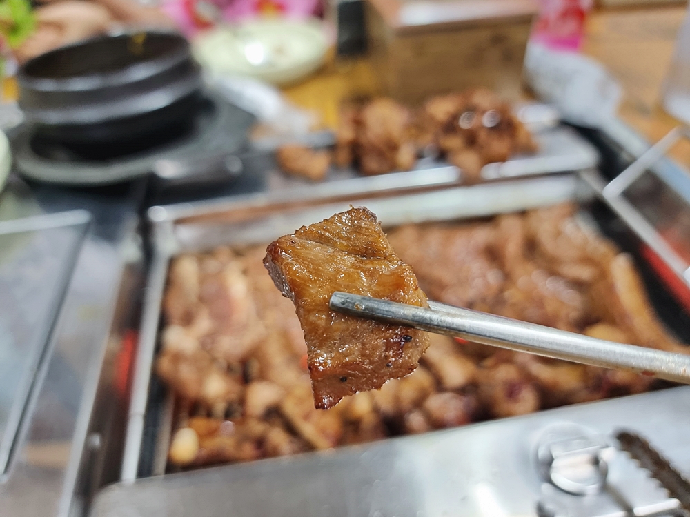 뜨거운 불판위로 갈비를 올려줬는데요. 딴짠의 양념이 익어가면서 나는 향은 군침돌게 했답니다.