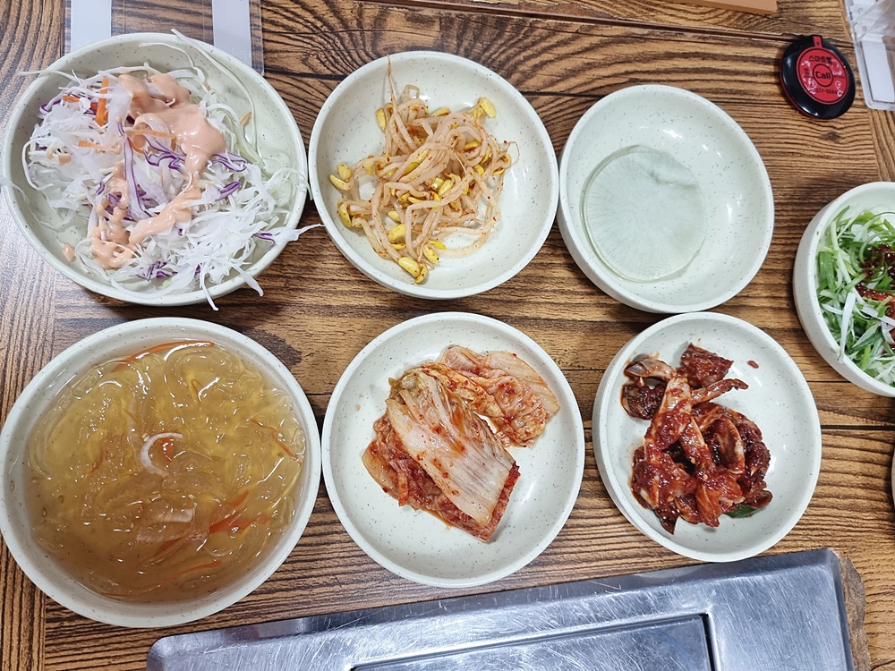 잠시후 반찬들이 채워졌는데요. 반찬들은 화려하진 않지만 갈비와 잘 어울리는 것들로 채워졌네요.