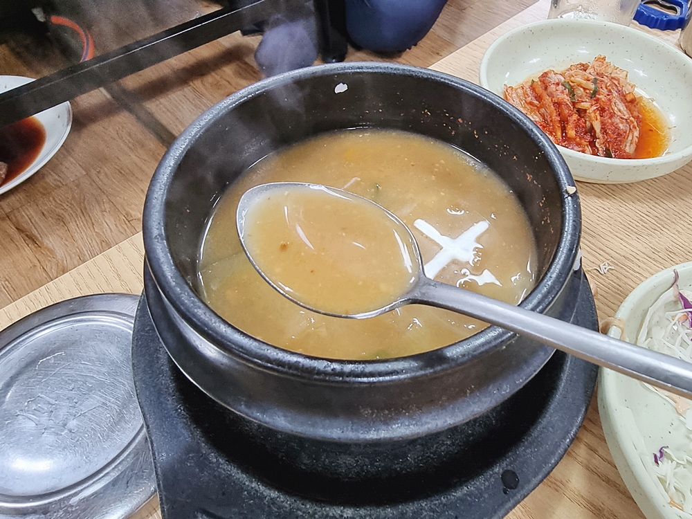 이곳은 공기밥을 주문하면 된장찌개를 주시는데요. 구수한 된장찌개는 입안을 깔끔하게 정돈시켜줬답니다. 그리고 아이들을 위한 된장국도 따로 주시다보니 아이를 동반한 가족분들이 찾기에도 좋은 곳이랍니다.
