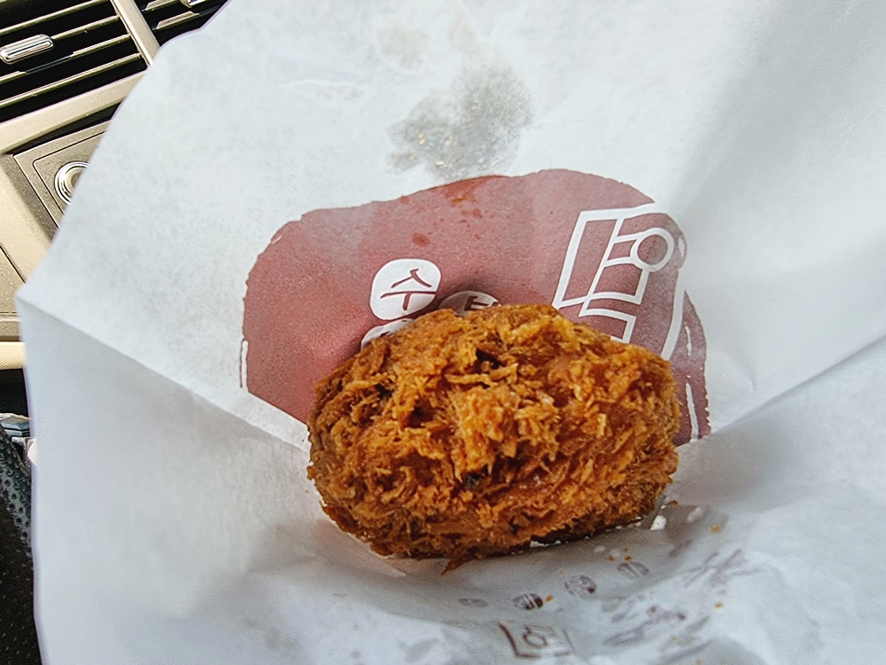 볼카츠는 종이에 감싸져 있었는데요. 겉은 바삭하고 속은 촉촉한 고기들이 가득 들어가 있었는데 살짝 짭조름함까지 더해져 굳이 다른 소스들은 필요치 않더라고요.