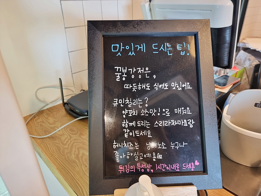 한쪽으로는 맛있게 먹는 방법이 적혀 있었는데요. 맛있게 먹는 방법이라기 보다는 어떤 맛인지를 설명해주는 입간판이었네요.