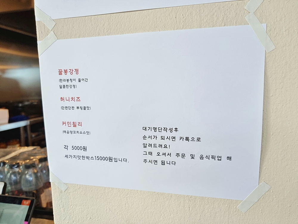 점심을 먹고간터라 식당에서 먹어야 하는 음식들 보다는 테이크아웃으로 먹을 수 있는 돼지강정인 꿀봉을 먹기위해 가게 앞으로 찾아갔는데요. 일찍이 찾아오신분들로 가득가득 했답니다.