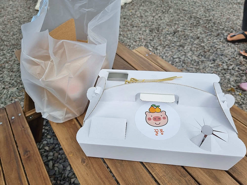 한참을 금악마을 주변을 돌아보다가 저희 차례가 가까워지자 서둘러 제주 꿀봉을 다시 찾았는데요. 주문을 하고 나서는 그리 오래 기다리지 않고 돼지강정을 받아볼 수 있어답니다.