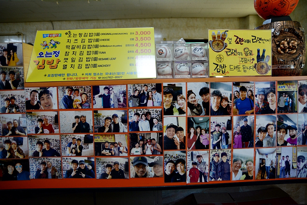 아마 TV 프로그램에서도 제주를 주제로 하는 예능을 보다보면 가끔 제주 오는정김밥을 사다 먹는 연예인분들을 봐왔을텐데요. 나중에 김밥집을 찾아가 연예인 사진들을 확인하다보면 그분들은 대부분 이곳의 단골이라는걸 확인해볼 수 있답니다.