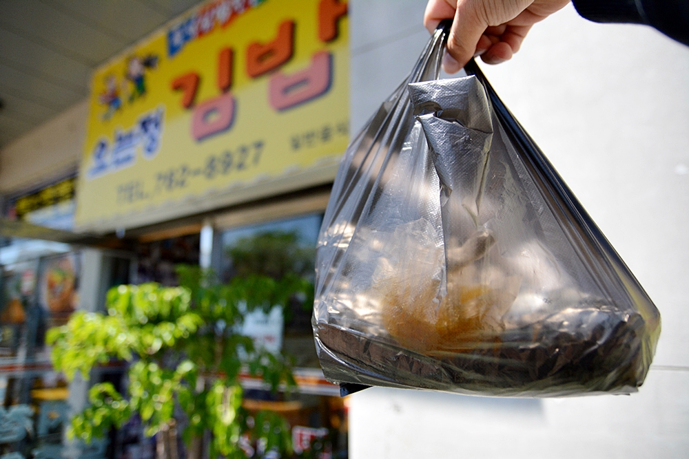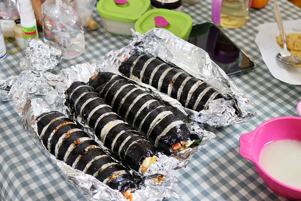 김밥은 살짝 기름기가 많은 편이라 먹다보면 느끼함이 맴도는데요. 하지만 뭔가 중독성 강한 맛이 자꾸만 손을 김밥쪽으로 이끈답니다.