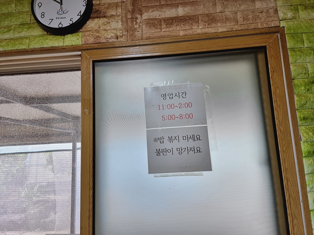 창문에는 솥뚜껑에 볶음밥을 볶아 먹지 말아 달라는 묵구가 적혀 잇었는데요. 다들 솥뚜껑을 보면 마지막으로 볶음밥을 생각할텐데 아무래도 관리가 힘들어서인지 볶음밥은 만들어 먹지 못했답니다.