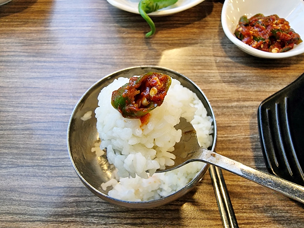중간중간 오징어젓갈이나 멜젓을 밥위에 올려 먹어줬는데요. 간도 적당하고 너무 맛잇어서 젓가 두종류만으로도 공기밥 하나는 클리어할 수 잇겠더라고요.