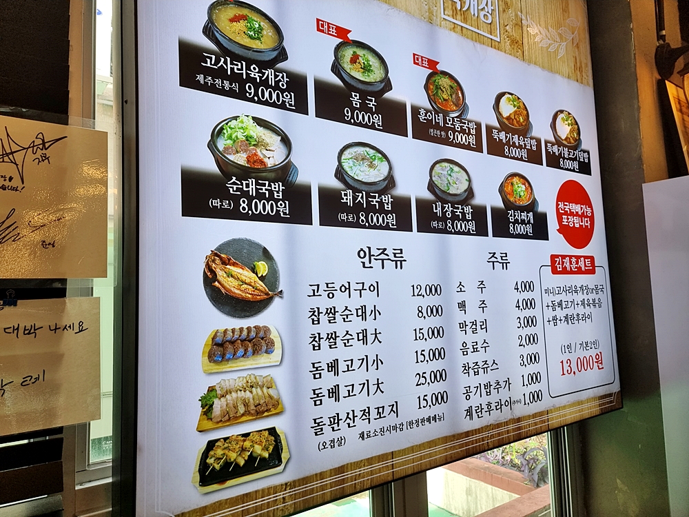 안으로 들어가보니 가장 먼저 연예인들 싸인이 눈에 들어왔는데요. 아무래도 제주 향토음식인 고사리유개장으로 유명한 곳이다보니 셀럽들도 많이들 찾으시는거 같더라고요.