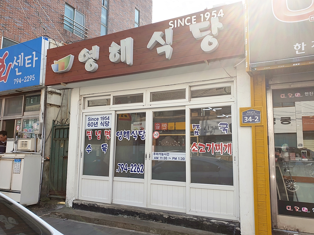 대정에 위치한 영해식당은 50여년간의 전통이 있는 식당으로 특히 소고기찌개가 맛있는 곳이랍니다.