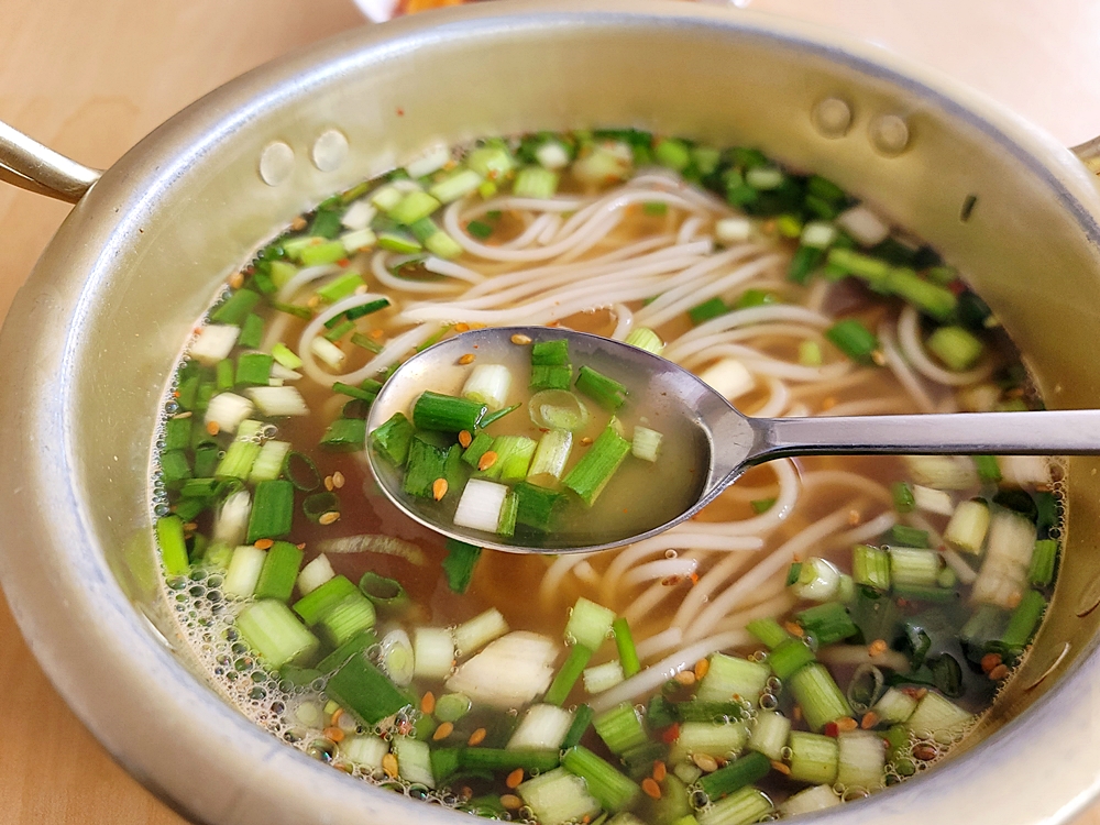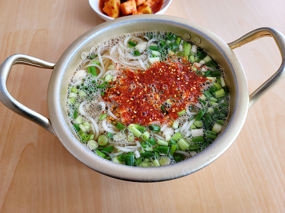 양은냄비에 말아주신 멸치국수는 미리 삶아놓은 육수를 더해주시는데요. 담백하고 감칠맛 폭발하는 멸치국수의 진한 맛을 느낄 수 있답니다.