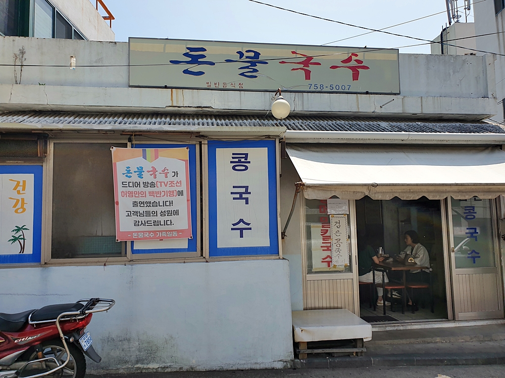작고 허름한 가게인 돈물국수는 제주 향토음식인 꿩메밀칼국수와 콩국수가 유명한 곳으로 근처 현지인들에게는 일찍이 알려진 노포맛집이랍니다.